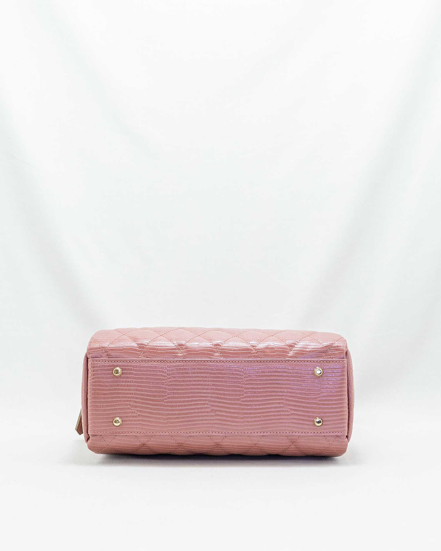 | 素材 | 牛革(リザード型押し・キルティング加工)、レーヨン、鉄(持ち手) |