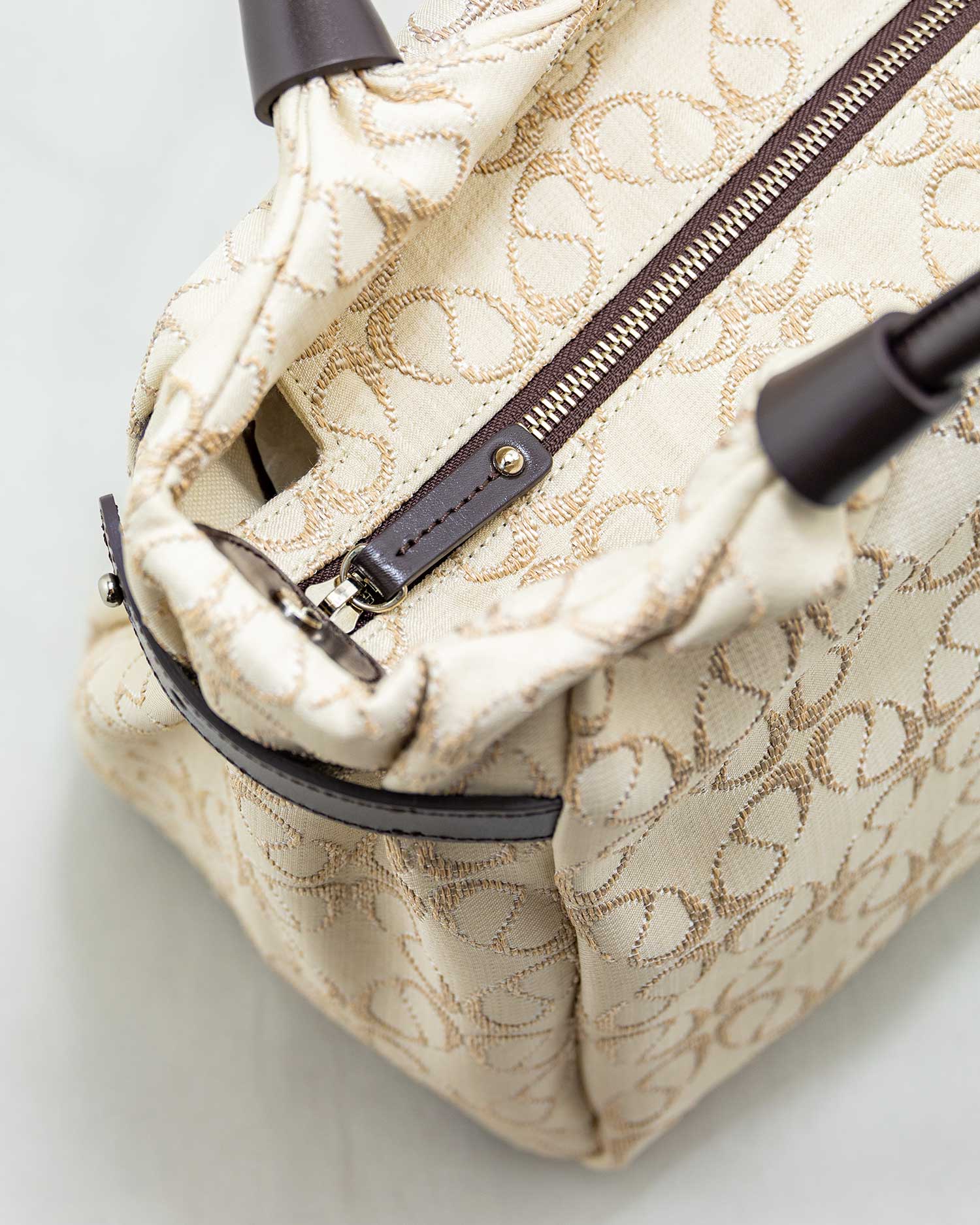 世界のハイブランドからも信頼を置かれるイタリア製の高級ジャカード織物を採用し、持ち手やファスナーの引手、サイドベルトには国産の上質な牛革を使用し強度を持たせました。内側には農薬や肥料を使わず、自然的な農法で育てられたハリのあるオーガニックコットンを使用しています。