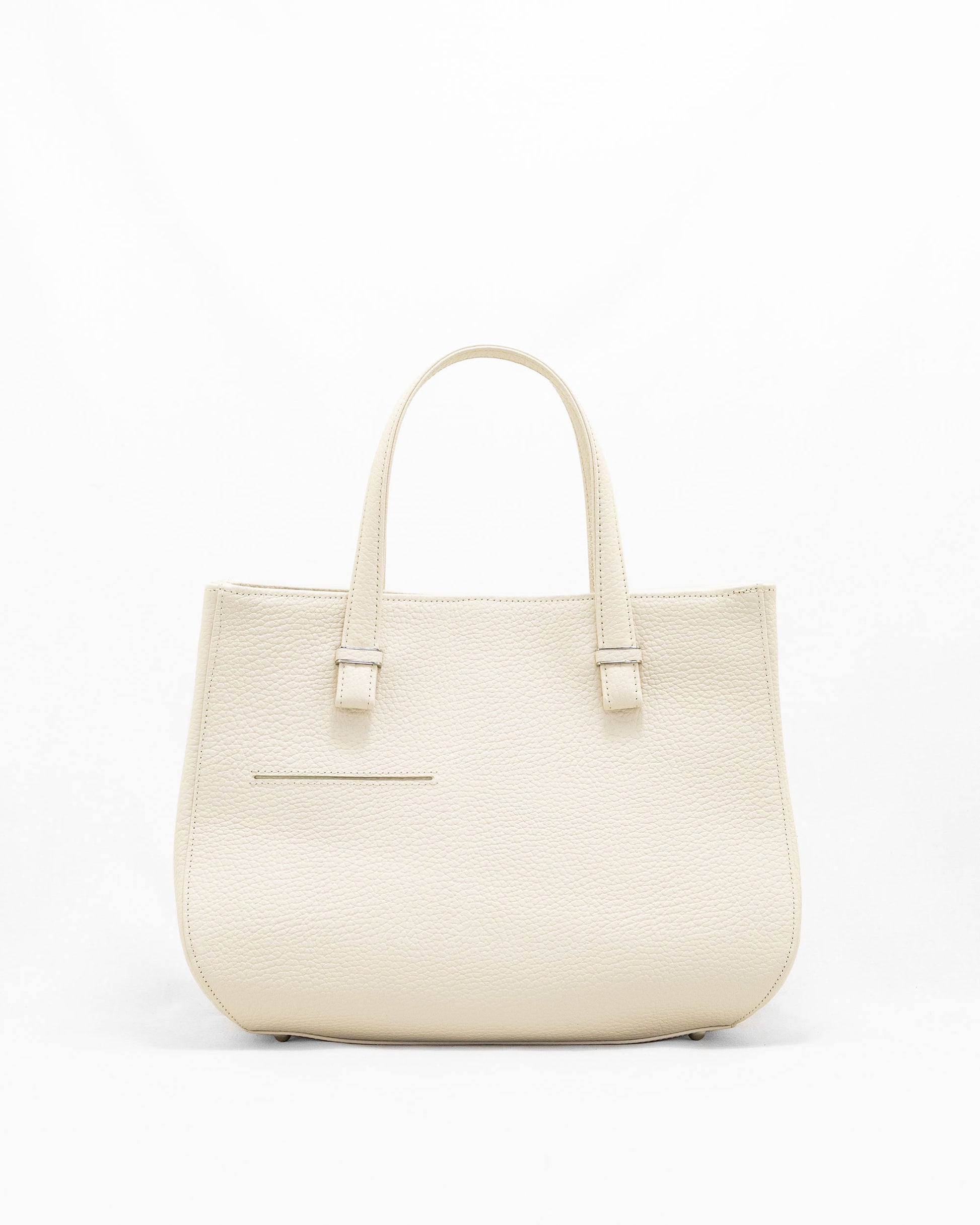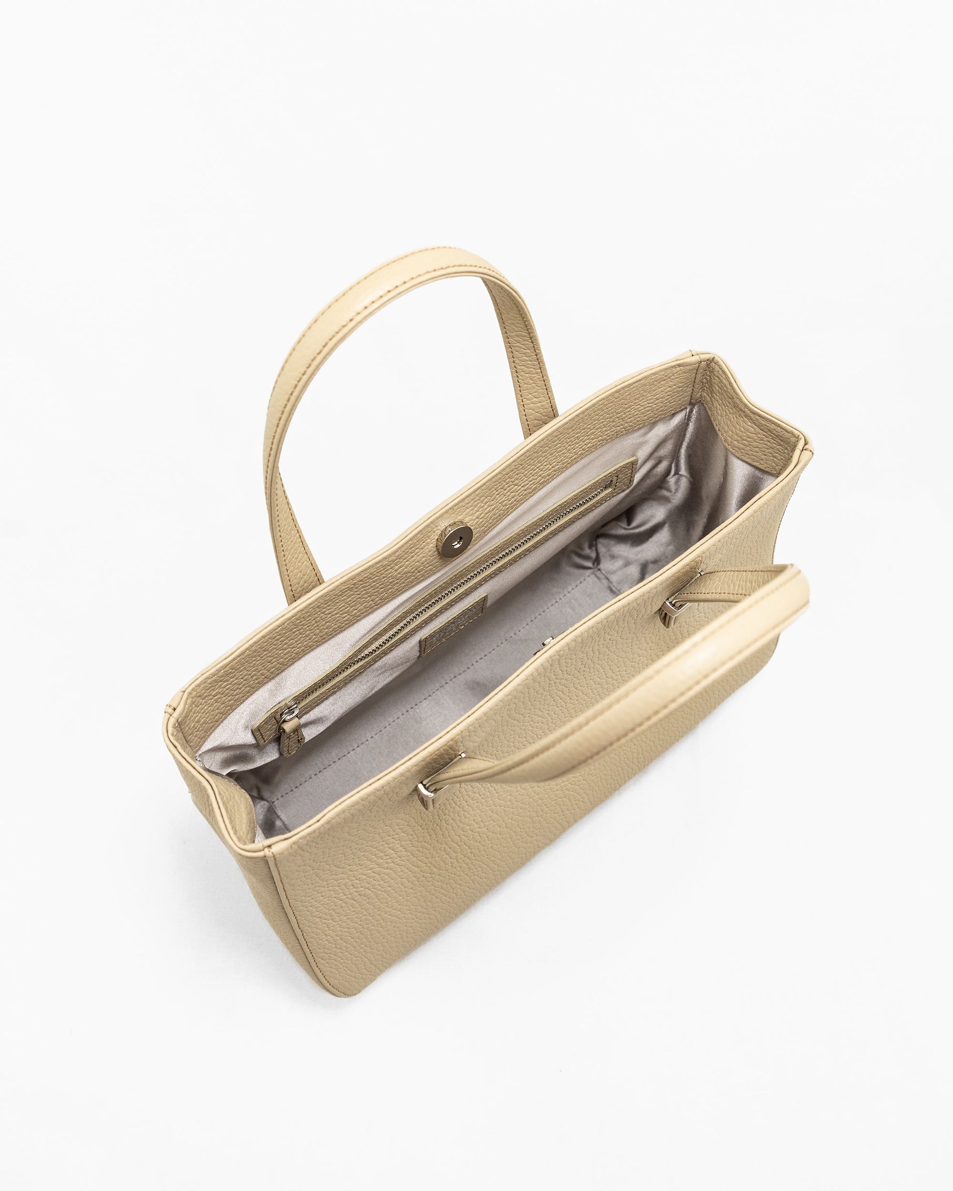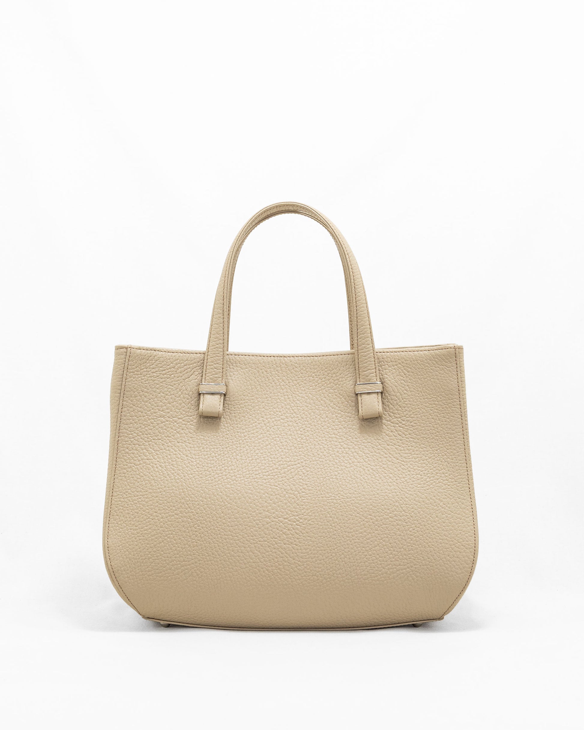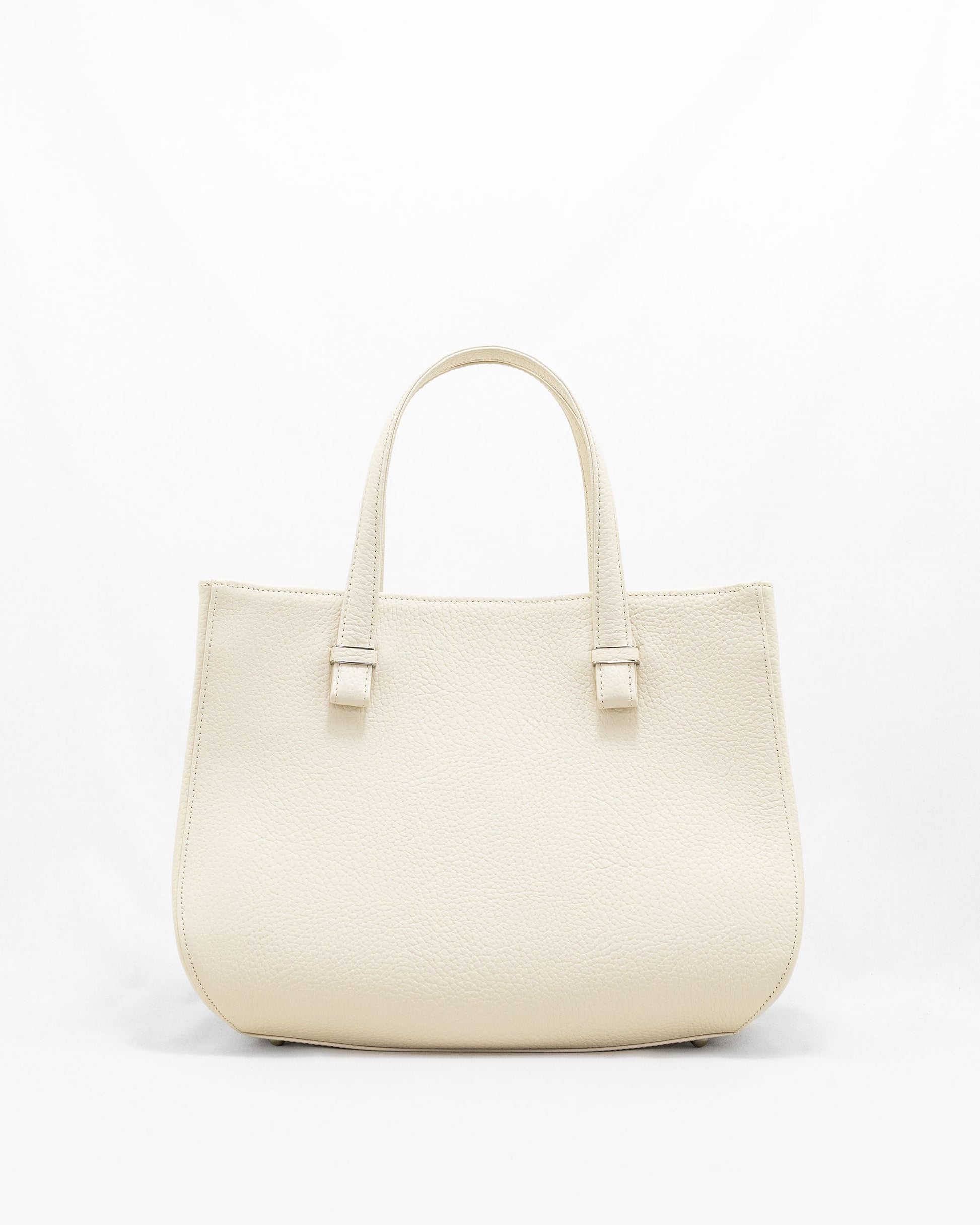 季節や天候に左右されず、通勤など、お仕事やプライベートでもオンオフどちらでも華を添える嬉しいデザイン。B5サイズ、長財布、ポーチなどが収納できるサイズ感で、大きすぎず小さすぎず、丁度良い使い心地。本革は表面に防水加工を施した国産シュリンクレザーで、急な雨に降られても布で拭いておくことでひとまず安心です。