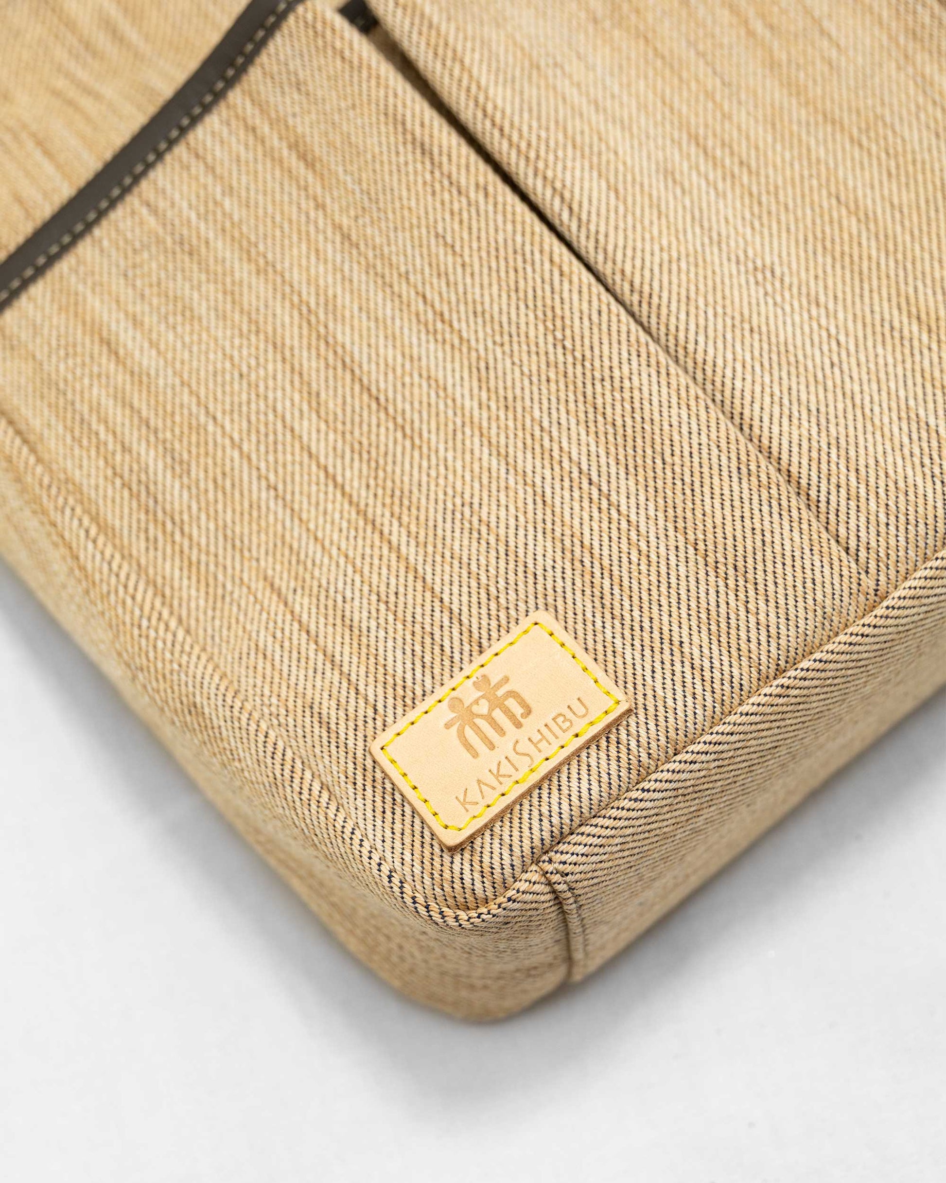 | 素材 | 綿(柿渋染めデニム生地)、牛革、アクリル |