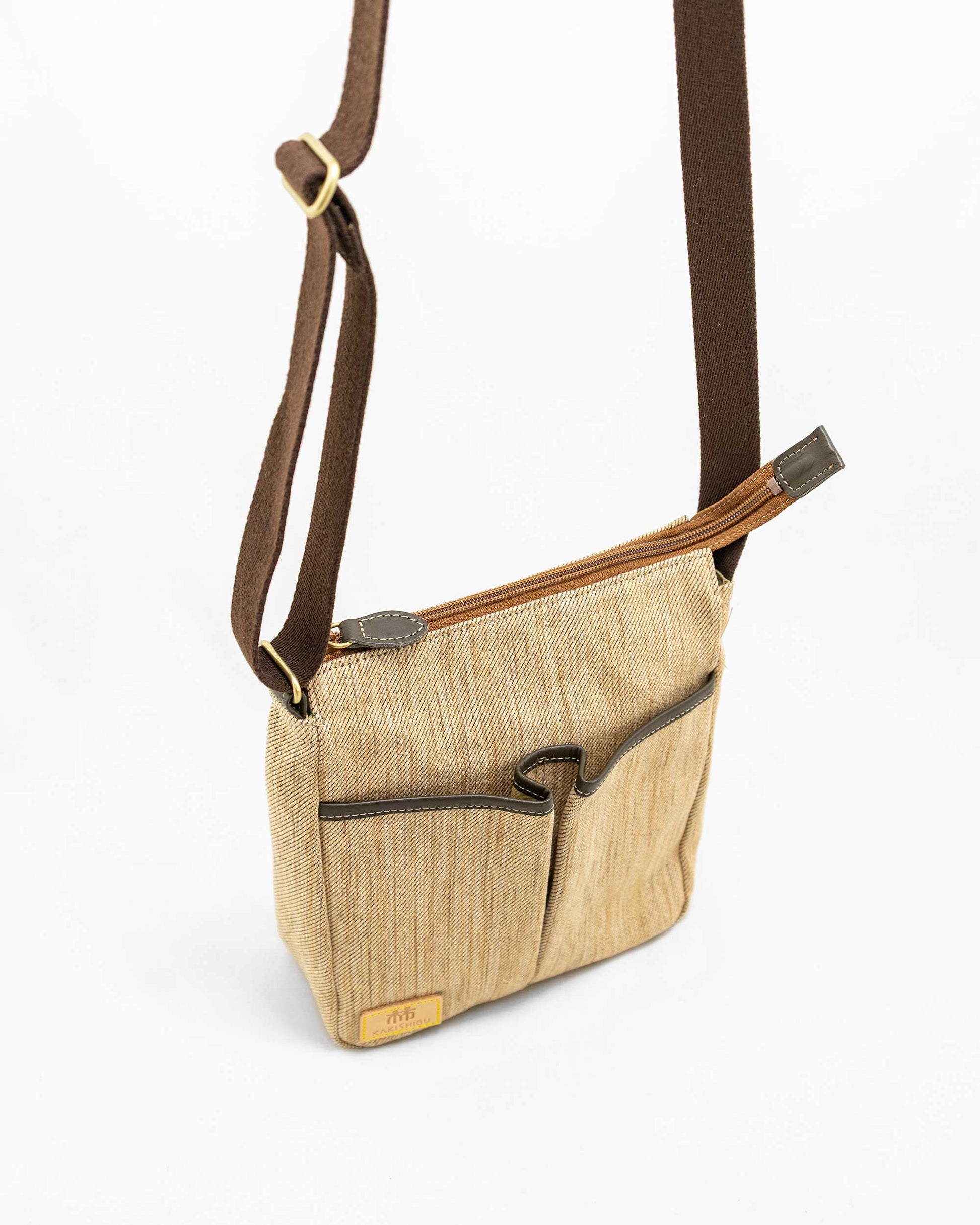 心地よい肌触りの生地を使ったKAKISHIBUポシェットは、化学染料のない千年以上も前から用いられてきた染料技術で生まれた柿渋染めを採用。とても軽く柿渋染めのやさしい色が着こなしに華を添え、また小さいながらも収納力があり、散歩やランチ、ちょっとしたお買い物などのお出かけに最適です。