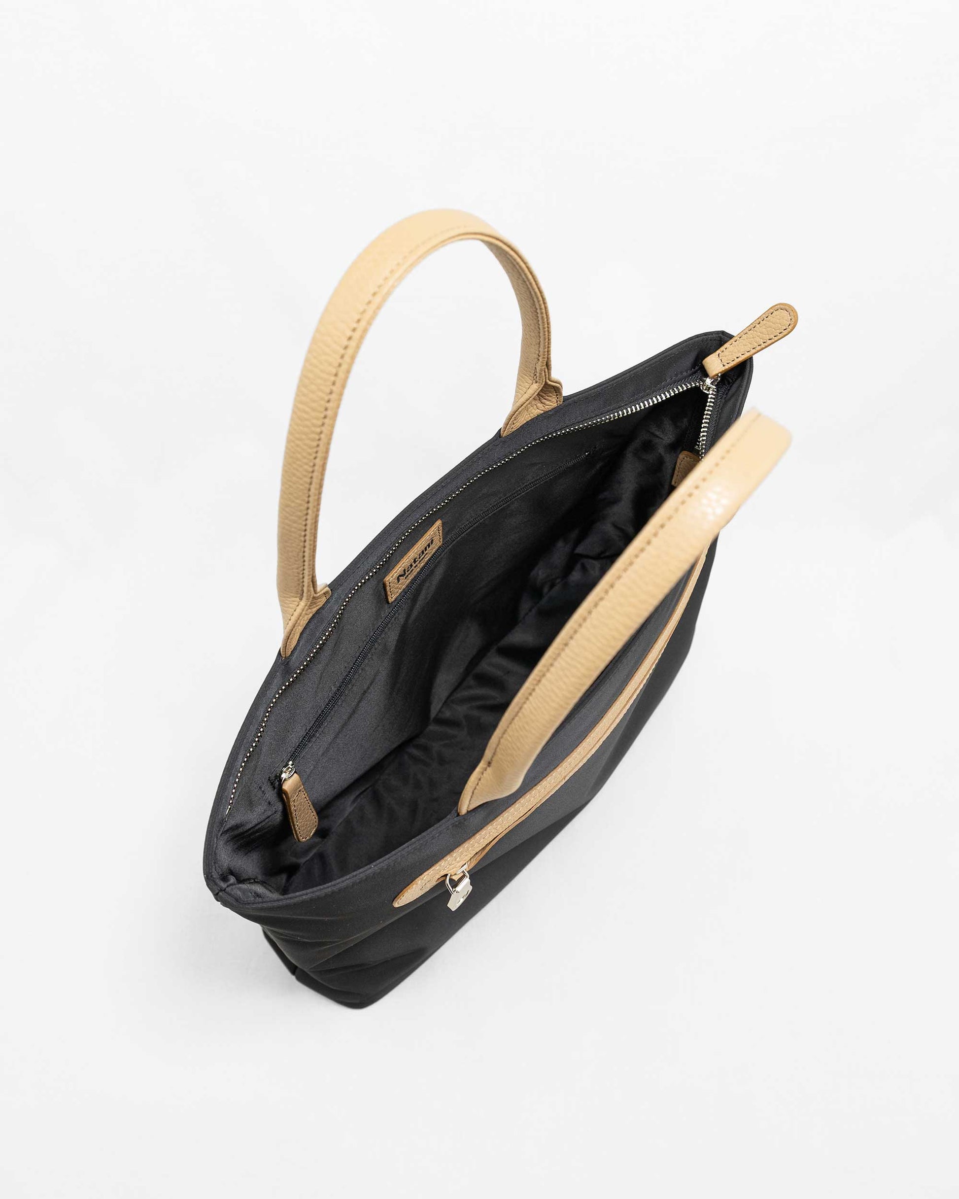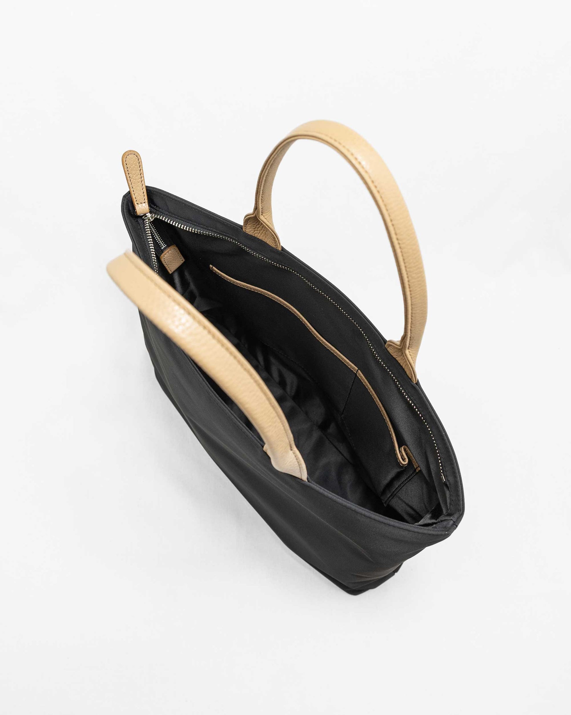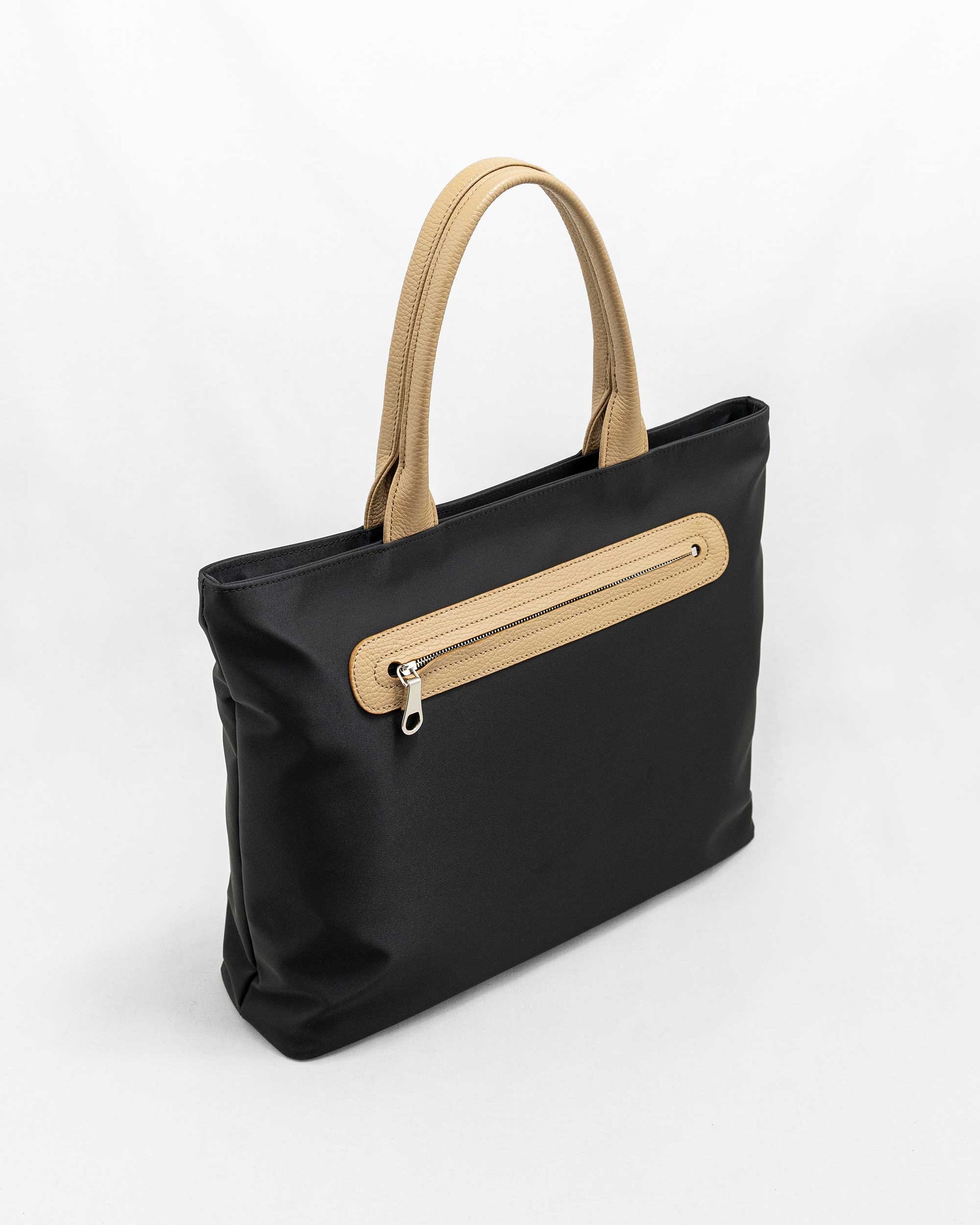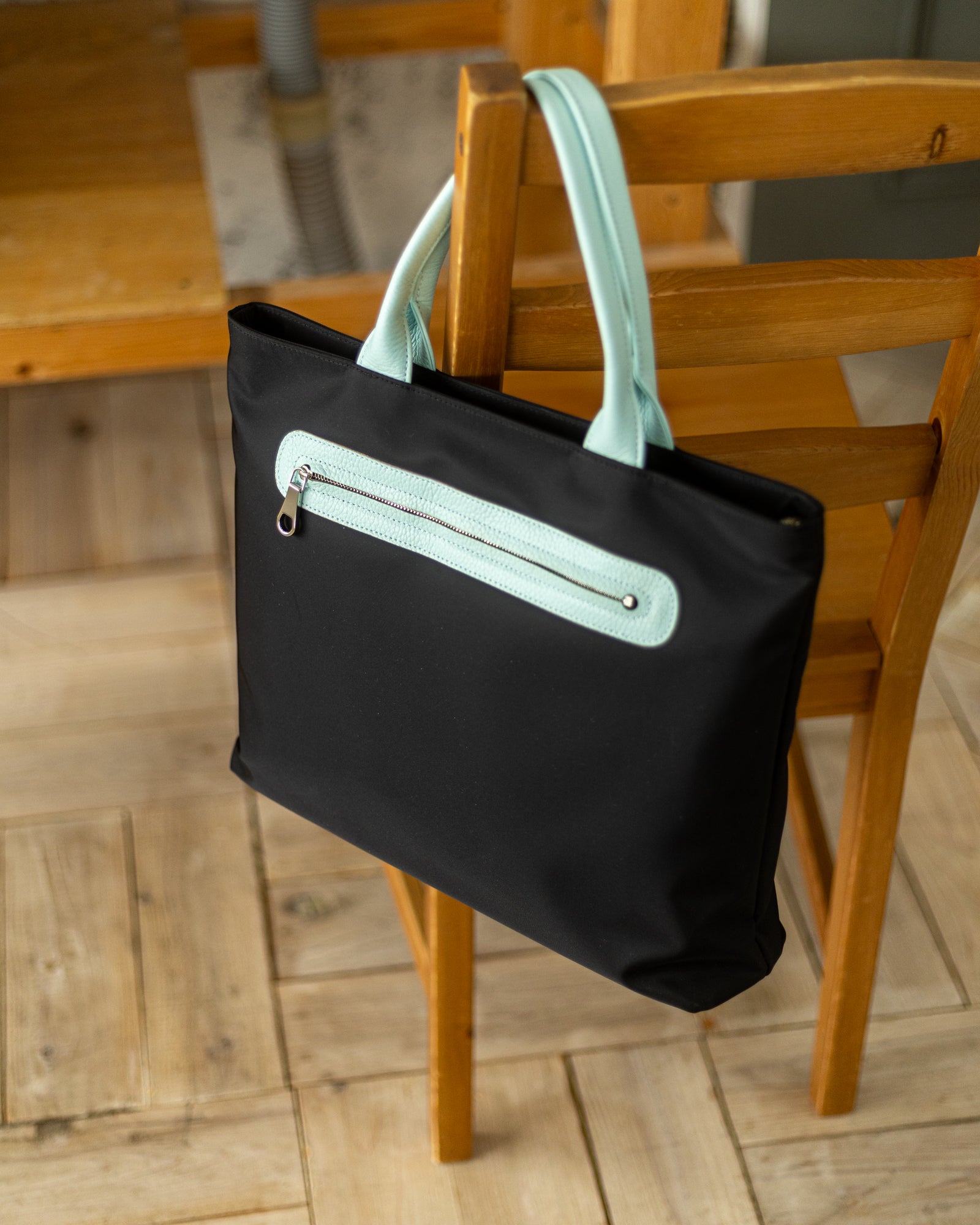 A4サイズの楽譜や教科書などが楽に収納できて、学校やお稽古ごとに役立つレッスンバッグが登場。ナイロン100%の素材とイタリア製シュリンク型押しレザーで500gの軽さ。フロントと内側にファスナーポケットと、オープンポケットが2つあるので散らかることなく整理でき、モノの出し入れも楽。サブバッグとしても魅力のレッスンバッグです。